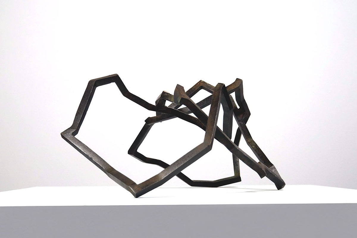 Ces petites sculptures sont des œuvres singulières, pleines et entières. Elles ne sont ni des maquettes, ni des ébauches en attente d’une grandeur future : chacune porte en elle une autonomie conceptuelle et poétique. Leur ligne fermée, leur espace symbolique intérieur fonctionnent comme une architecture miniature, où le vide et le métal dialoguent dans une intimité presque secrète. Pourtant, leur légèreté physique contraste avec leur force d’évocation — une densité immatérielle, où la précision du geste se mêle à l’écho psychologique qu’elles suscitent.