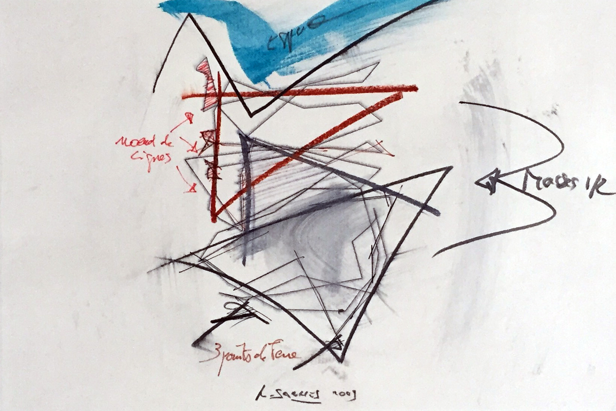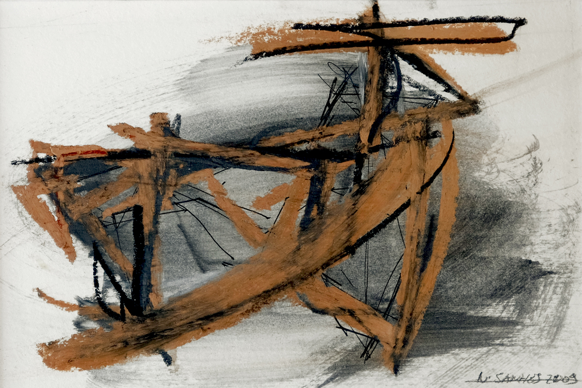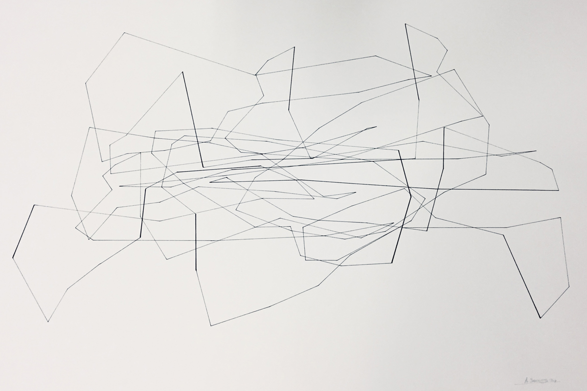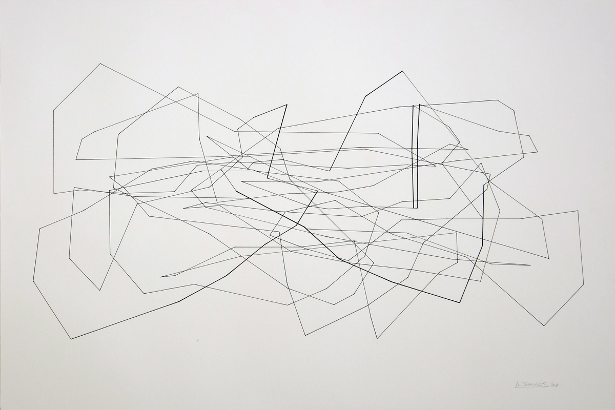 Là encore, le point de départ vient d’une sculpture, mais ce qui importe c’est que le déplacement de ces lignes sur la surface engendre des variations de lignes qui, en même temps, multiplient l’espace et le découpent comme s’il s’agissait de montrer qu’il était possible de le réduire à néant. Traces objectives d’une sculpture, les lignes dessinent moins qu’elles ne font surgir et elles font moins surgir qu’elles n’ouvrent au visible des aspects cachés du monde.