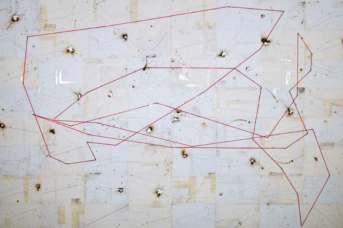Sur des feuilles blanches, des lignes dessinées se voient par endroit doublées par des lignes découpées qui donnent lieu à des mouvements de surfaces ressemblant à des soulèvements de plaques tectoniques à échelle miniature. Mais ces découpes révèlent aussi des arrière-plans singuliers.