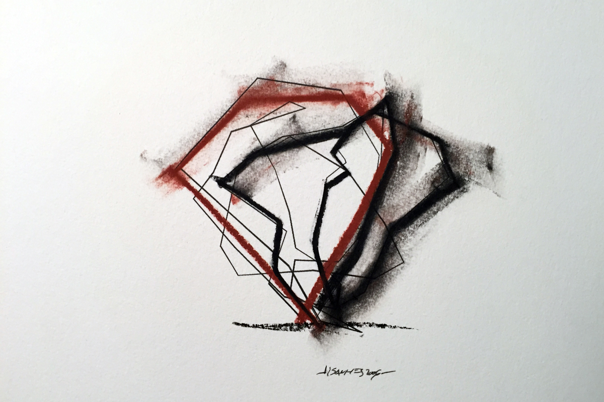 Ce secret, NS l’a perçu avec justesse. Il parvient par des gestes simples à faire sourdre la lumière de la nuit, à révéler que l’autre face du dessin, par un jeu de miroirs liés au papier, est elle-même surface et que la création est un jeu éternel au sens où Héraclite d’Éphèse pouvait déjà noter dans le fragment 52 : « L’éternité est un enfant qui s’amuse, il joue au trictrac. À l’enfant, la Royauté ».